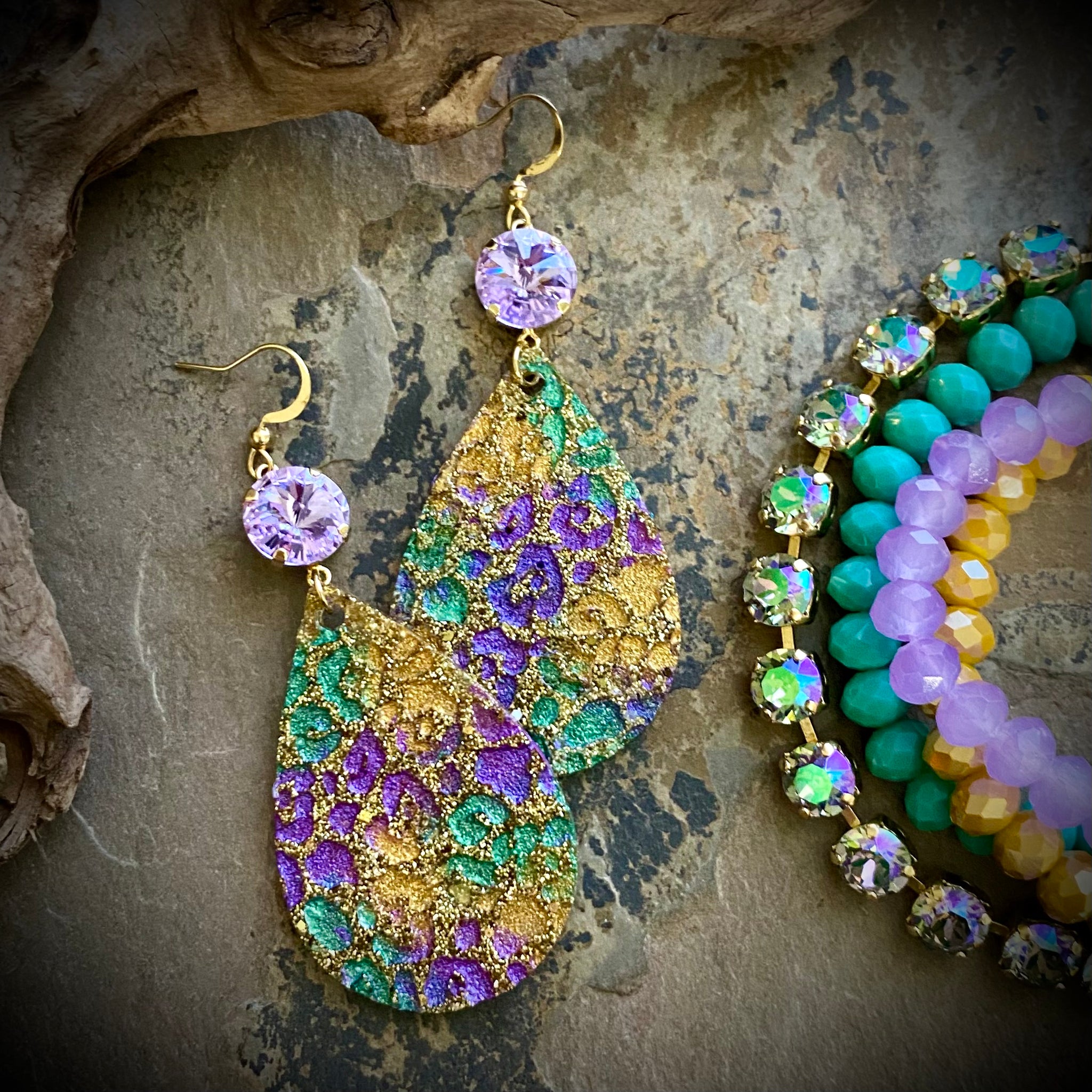 Hand painted, resin, Mardi Gras cheetah print earrings- please note, these are hand painted, some variation is to be expected. These are very lightweight.