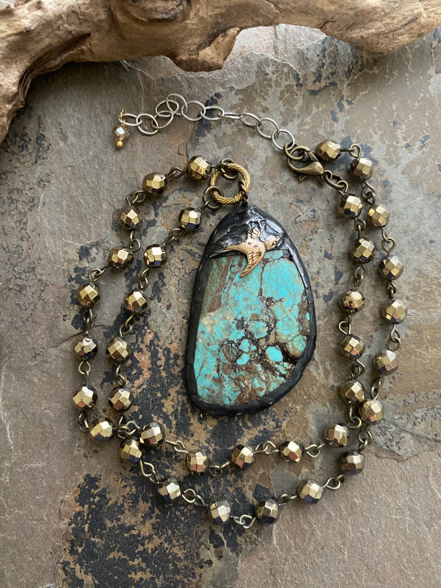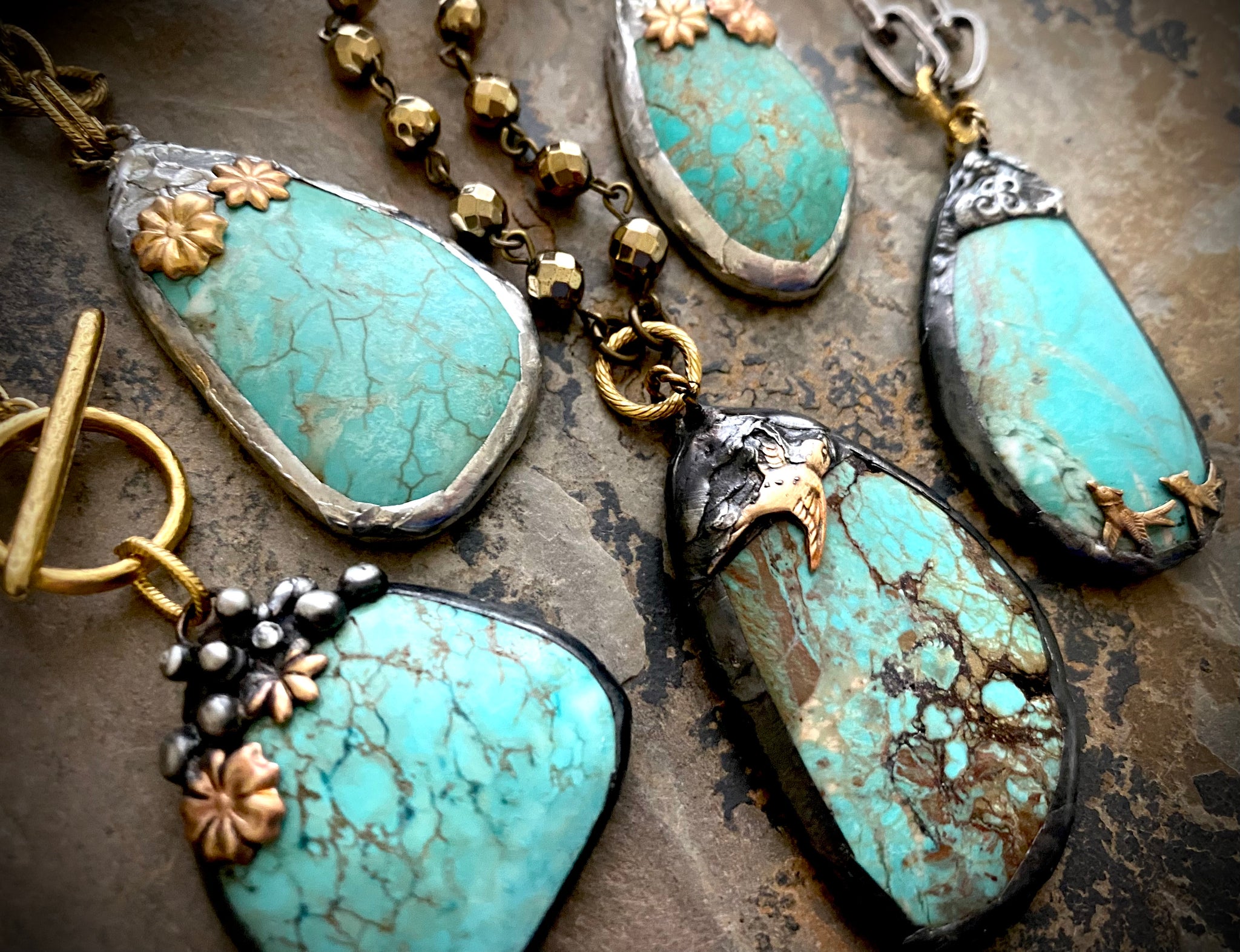 Hand soldered, each one of a kind, turquoise howlite necklace. Each measures 18-20 inches