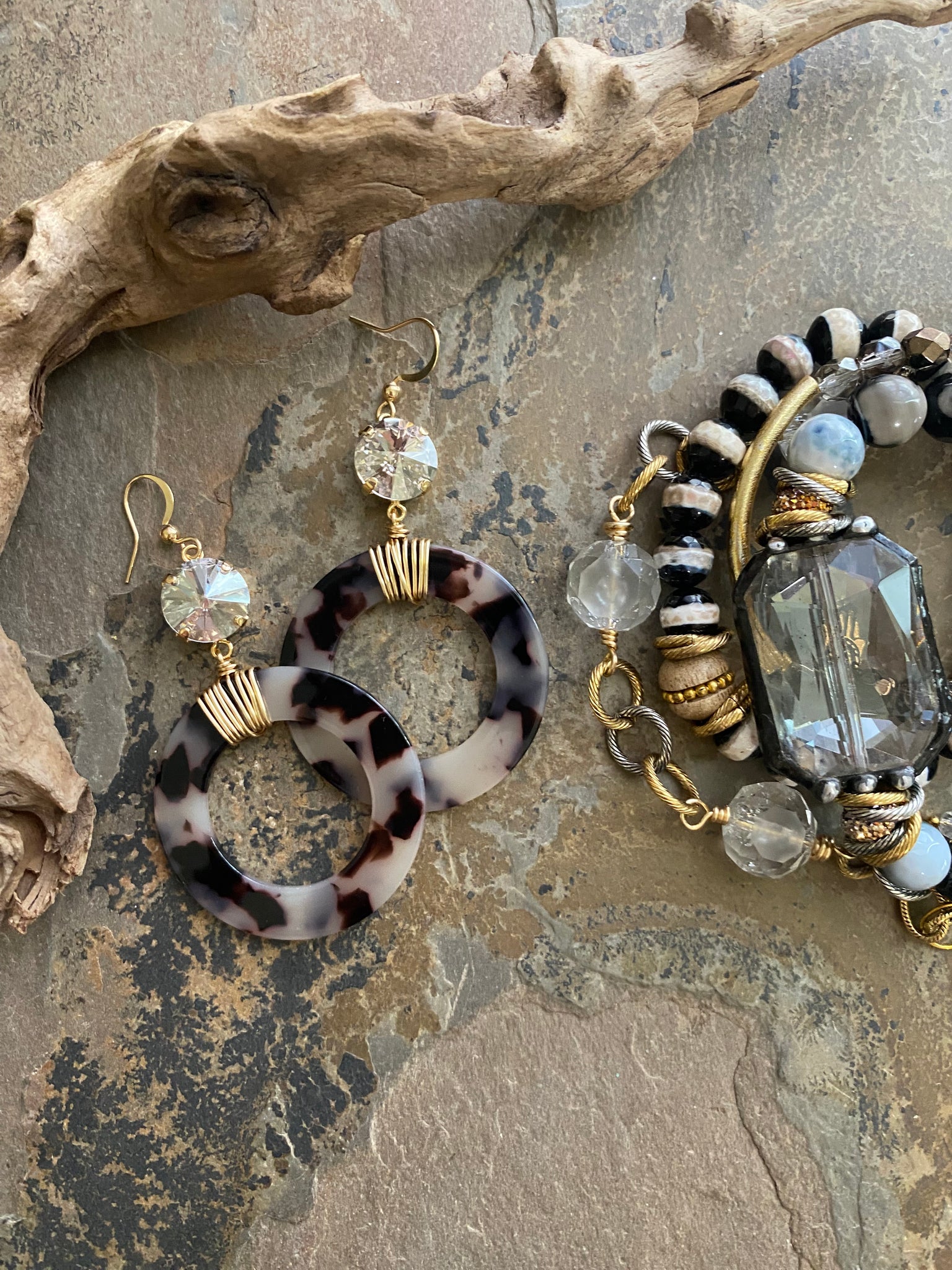 My personal fav, these wire wrapped blonde tortoise crystal earrings are sure to be yours too! Measures around 2.5 inches