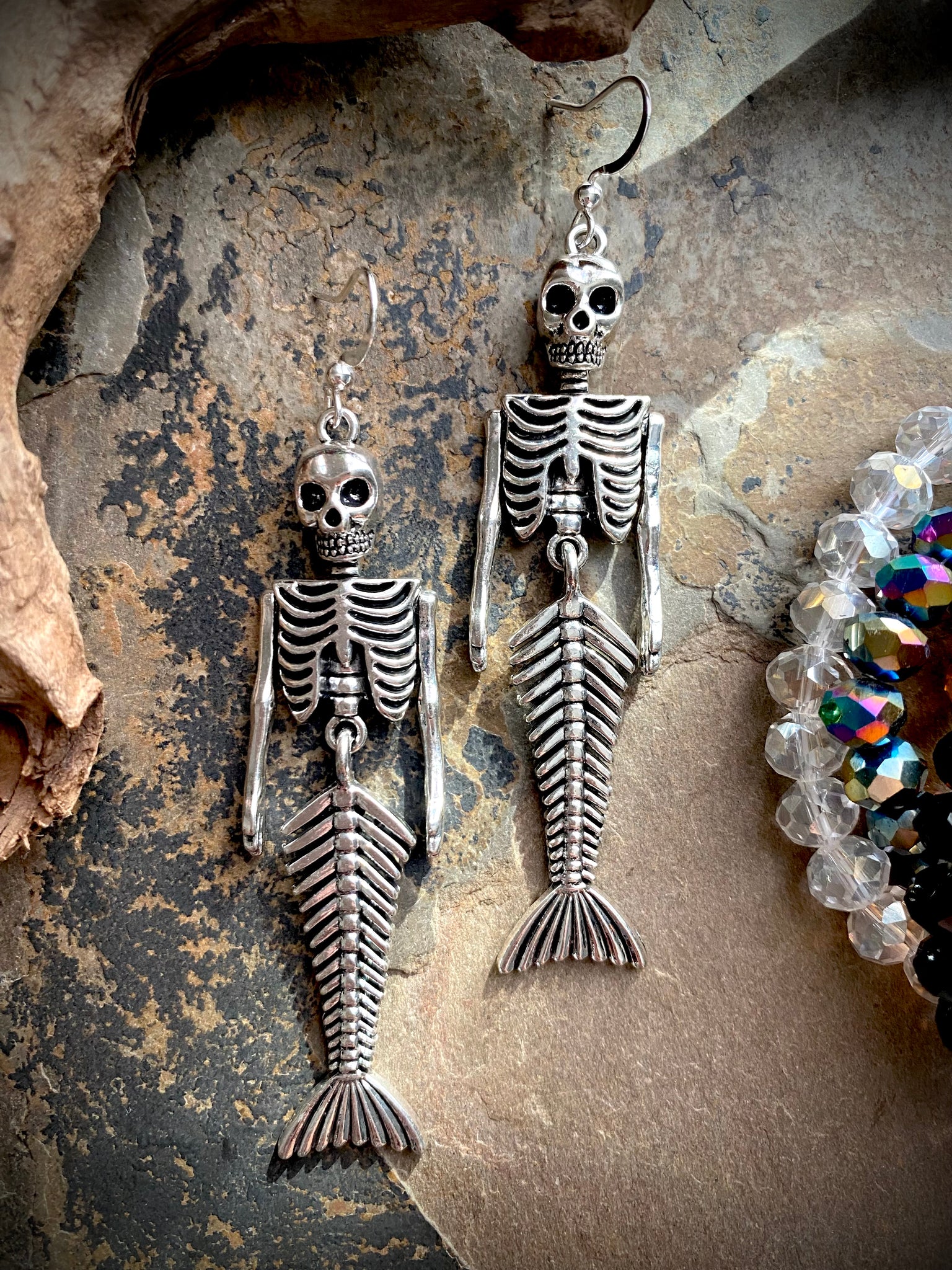 Spooky season for sea mavens! These mermaid Skelton earrings are everything you need to stay true to your mermaid heart and celebrate Halloween!